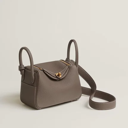 Mini Lindy Ébene Clemence Leather with Gold Hardware, Stamp B includes felt protector, rain protector, dust-bag, box and ribbon Made